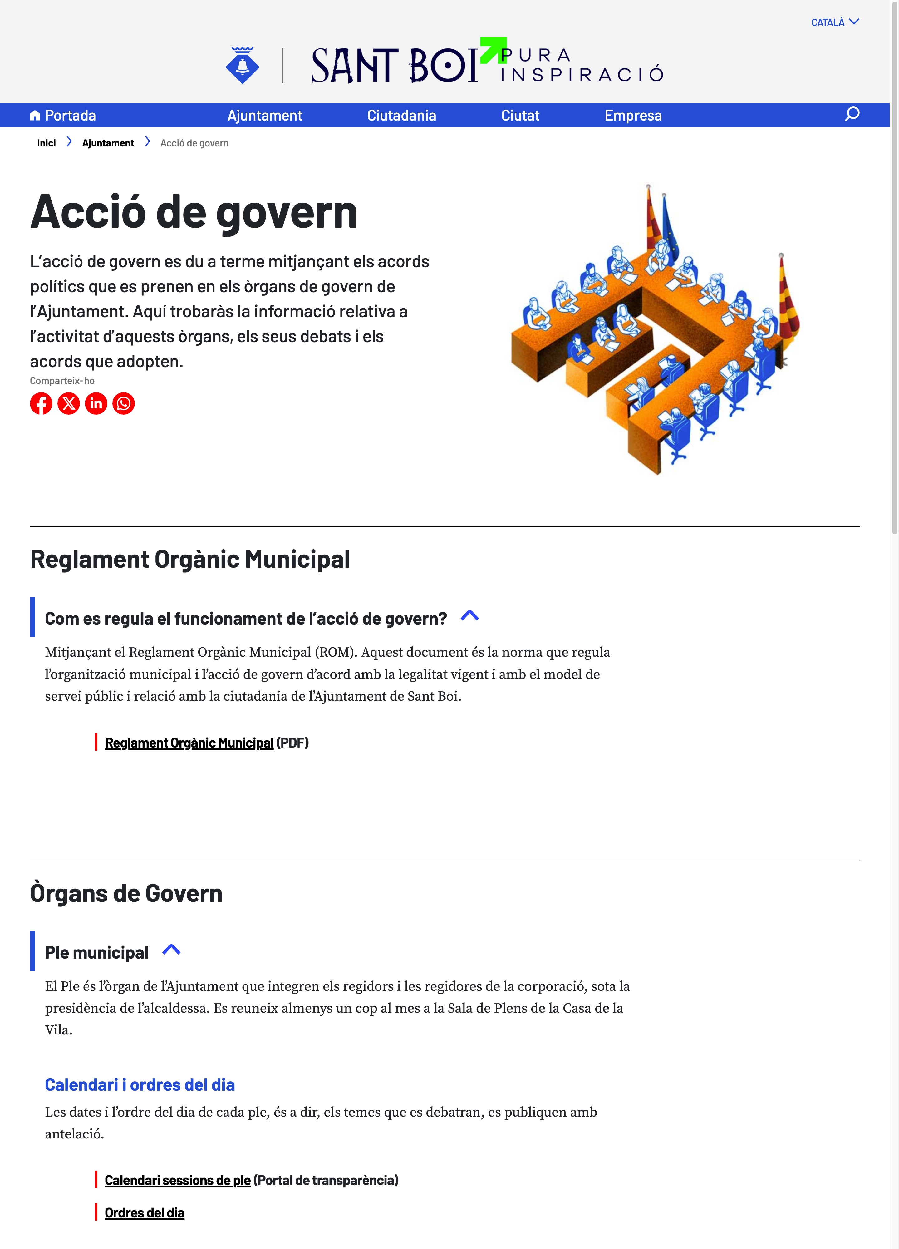 En el caso del Ayuntamiento de Sant Boi de Llobregat, optamos claramente por esta segunda vía. El objetivo era construir un sistema sólido que permitiera generar, de manera controlada, los distintos tipos de páginas que conforman el sitio: portadas, listados y páginas de contenido. Cada una de ellas responde a un propósito distinto dentro de la arquitectura del portal y cuenta con su propio comportamiento interno.